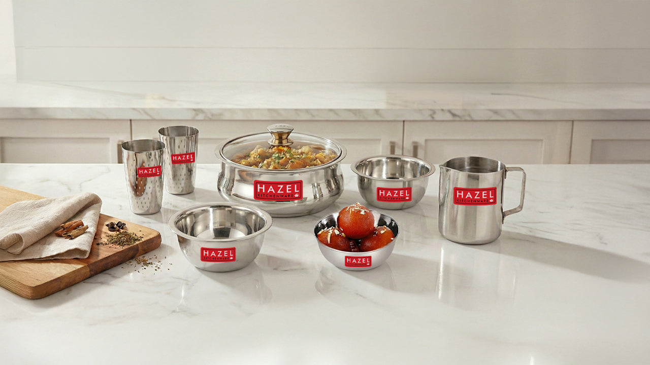 High quality utensils made from 304 Stainless Steel. Using it as table wear for serving rasam. A must for South Indians. However, not suitable for large families as it cannot hold more than 500 ml.