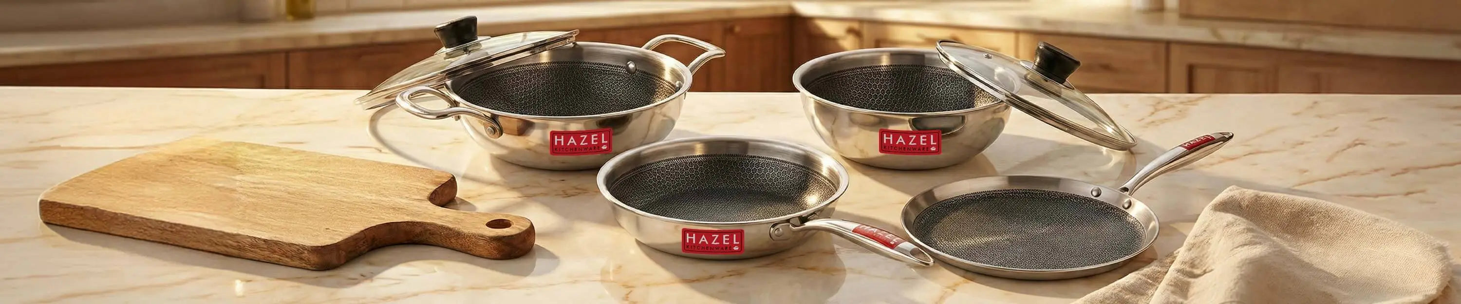Honeycomb triply cookware gives even heating, metal utensil safety, durability, healthier low oil cooking, and easycleaning.